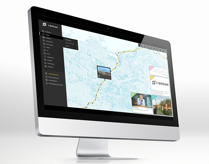Na potrzeby projektu przygotowaliśmy oraz wdrożyliśmy serwis internetowy wraz z aplikacją mobilną (PWA) do zarządzania przebiegiem wyprawy 3biegun, relacjami z odbytych spotkań oraz na bieżąco śledzeniem aktualnej pozycji Marka Kamińskiego. Serwis umożliwiał przygotowanie dowolnej trasy w oparciu o mapę Google oraz rozmieszczenie na niej zaplanowanych spotkań, następnie śledzenie postępu wyprawy oraz jej relacjonowanie.