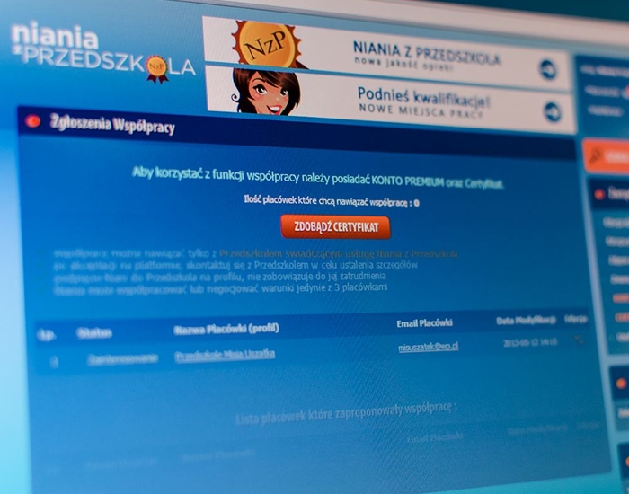 Przygotowaliśmy identyfikację wizualną, zaawansowany serwis szkoleniowy oraz dedykowaną platformę internetową. Nianiazprzedszkola.pl została napisana od podstaw pod potrzeby klienta. Udało nam się stworzyć bardzo zaawansowane funkcjonalnie narzędzie przy zachowaniu prostoty użytkowania.
